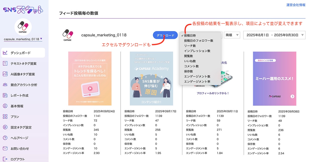 無料なのに「インサイトデータ無期限保存」「CSV出力」ができるインスタ運用に必須のツール「SNSスケット」