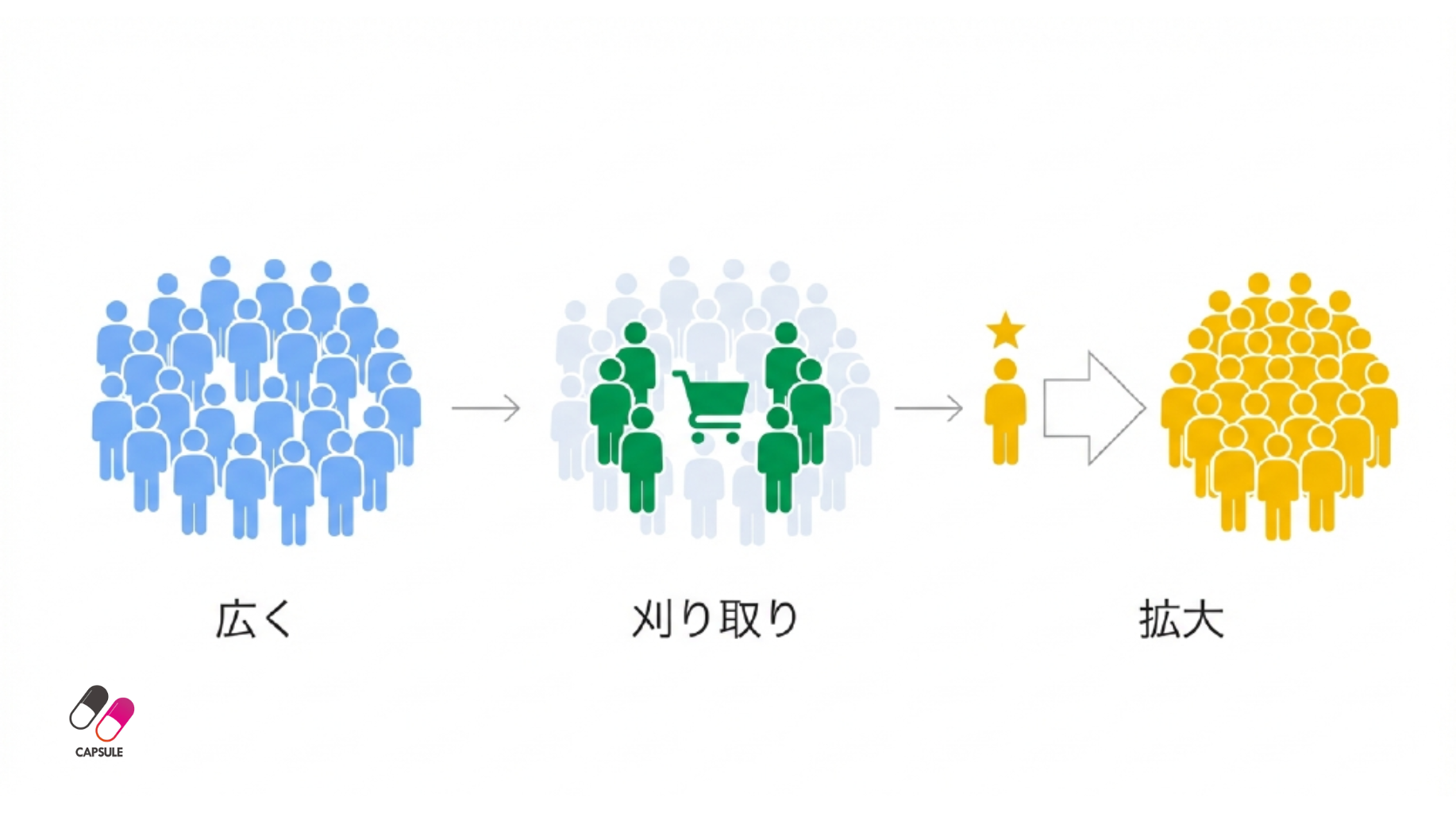 初心者が最も陥りやすい罠。それは「ターゲットを絞り込みすぎてしまうこと」です。「30代女性で、美容に関心があって、かつ旅行が好きで、さらにiPhoneを使っていて…」と条件を重ねれば重ねるほど、一見、理想の顧客に近づいているように思えます。しかし、これはAIの学習機会を奪いかねません。