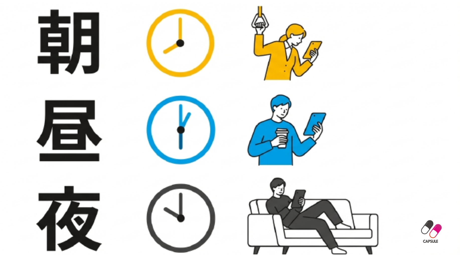 • 平日の朝(7:00〜8:30): 通勤中の地下鉄やバスでの情報収集タイム。